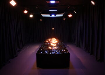 GLINT est une installation sculpturale, sonore et lumineuse qui incarne la fusion de l’art, de la nature, de la créativité et de la technologie, représentant un mélange unique de savoir-faire artisanal et de production technologique.