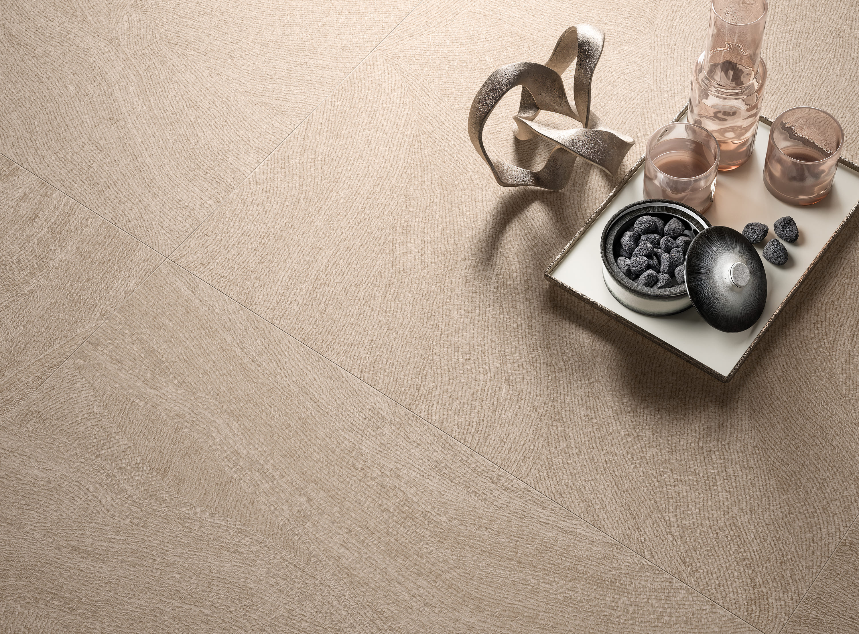 Des surfaces conçues pour mettre en valeur toutes les nuances du potentiel expressif du grès cérame, dans le but de caractériser les espaces dans lesquels elles sont utilisées avec une marque iconique.